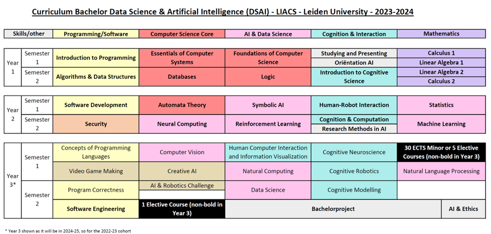The BSc programme Data Science and Artificial Intelligence is a 180 ECTS 3 year programme hosted at the Leiden Institute of Advanced Computer Science (LIACS).
